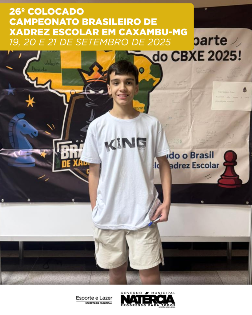 O atleta Tomás Lopes, de Natércia, participou do Campeonato Brasileiro de Xadrez Escolar, realizado em Caxambu-MG, nos dias 19, 20 e 21 de setembro.