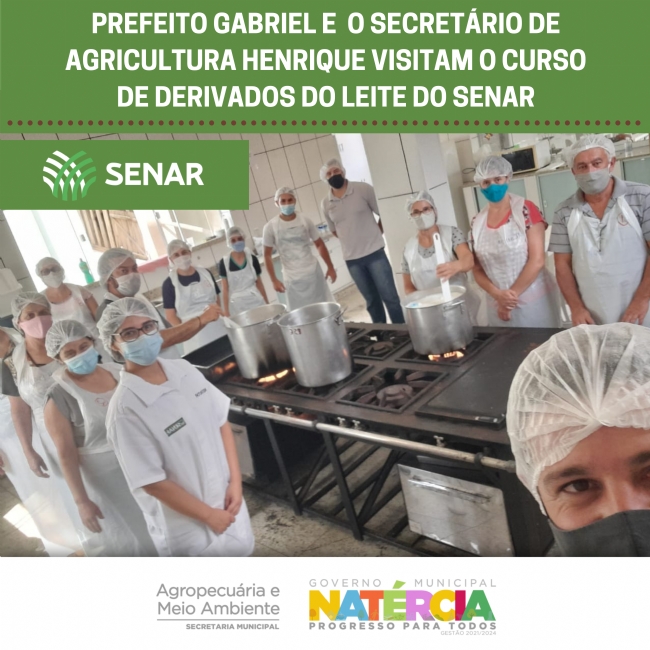 Notícias 12.03 12 de março de 2021 0 Compartilhar no Facebook Tweet no Twitter Secretário Municipal de Agricultura Henrique e Prefeito Gabriel fazem uma visita ao Curso de Derivados do Leite oferecido pelo Senar, que já se encerra amanhã em nosso município.