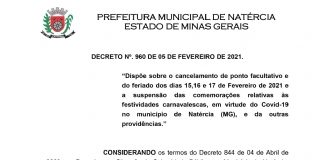 DECRETO Nº. 960 DE 05 DE FEVEREIRO DE 2021.