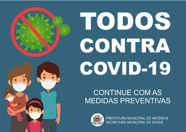 Notícias COVID AÇÃO: TODOS CONTRA COVID-19 8 de janeiro de 2021 0 Compartilhar no Facebook Tweet no Twitter A pandemia ainda não acabou! Continue com as medidas preventivas. AÇÃO: TODOS CONTRA COVID-19 Prefeitura Municipal de Natércia Secretaria Municipal de Saúde