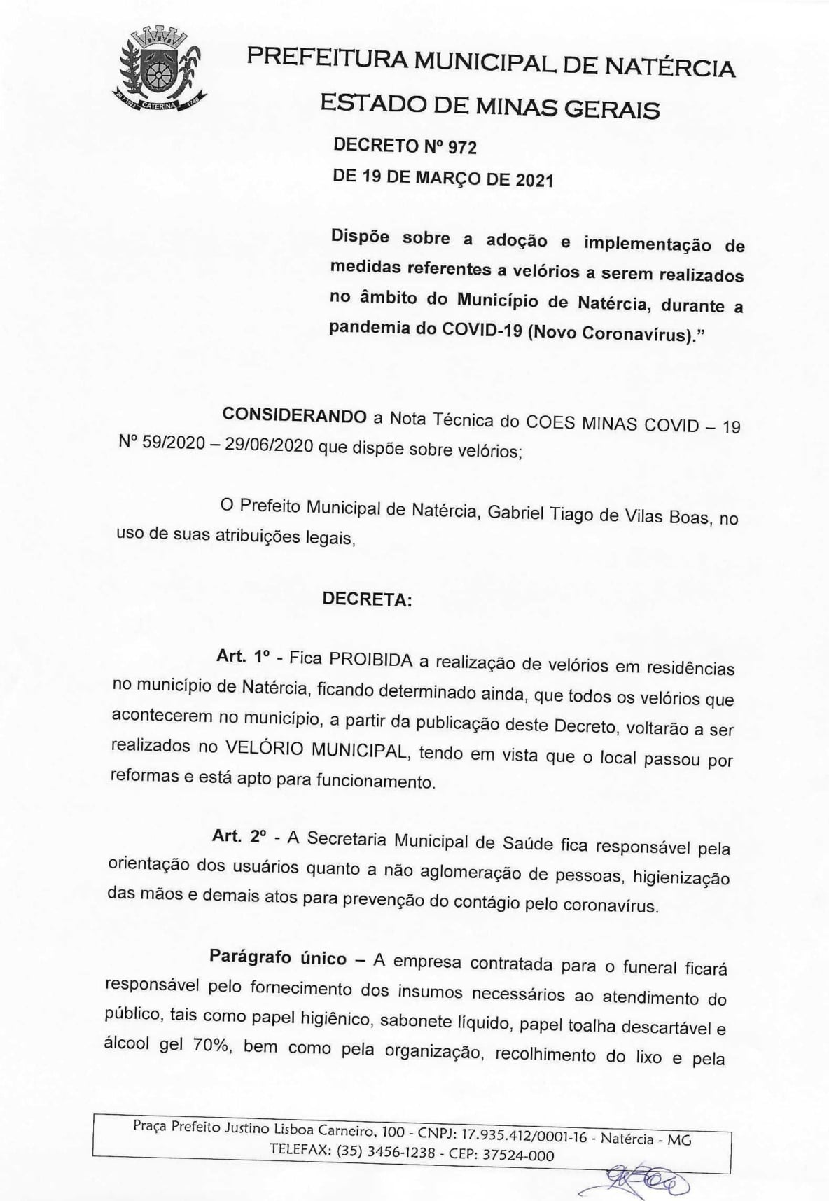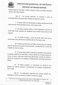 NotíciasNotícias COVID Decreto Nº 972 de 19 de Março de 2021 8 de abril de 2021 0 Compartilhar no Facebook Tweet no Twitter “Dispõe sobre a adoção e implementação de medidas referentes a velórios a serem realizados no âmbito do Município de Natércia, durante a pandemia do Covid-19.”